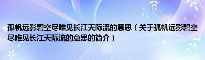 本文关于孤帆远影碧空尽唯见长江天际流的意思的简介就讲解完毕,希望对大家有所帮助。
