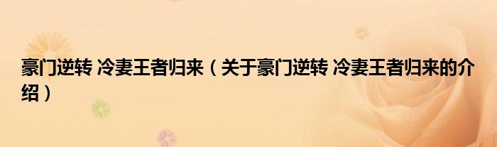 大家好,小安来为大家解答以上的问题。豪门逆转 冷妻王者归来,关于豪门逆转 冷妻王者归来的介绍很多人还不知道,现在让我们一起来看看吧!