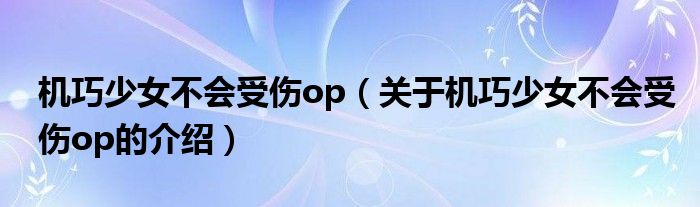 大家好,小安来为大家解答以上的问题。机巧少女不会受伤op,关于机巧少女不会受伤op的介绍很多人还不知道,现在让我们一起来看看吧!