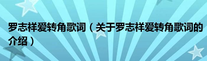 大家好,小安来为大家解答以上的问题。罗志祥爱转角歌词,关于罗志祥爱转角歌词的介绍很多人还不知道,现在让我们一起来看看吧!