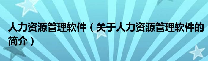 本文关于人力资源管理软件的简介就讲解完毕,希望对大家有所帮助。