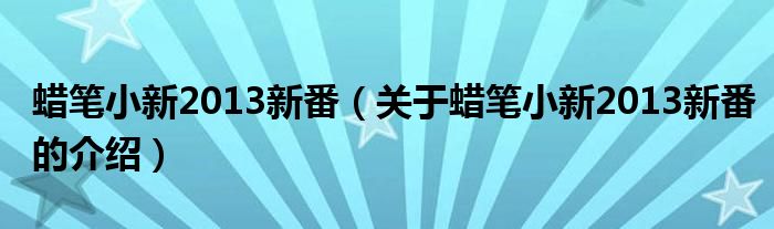 大家好,小安来为大家解答以上的问题。蜡笔小新2013新番,关于蜡笔小新2013新番的介绍很多人还不知道,现在让我们一起来看看吧!