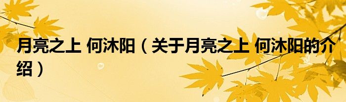 大家好,小安来为大家解答以上的问题。月亮之上 何沐阳,关于月亮之上 何沐阳的介绍很多人还不知道,现在让我们一起来看看吧!
