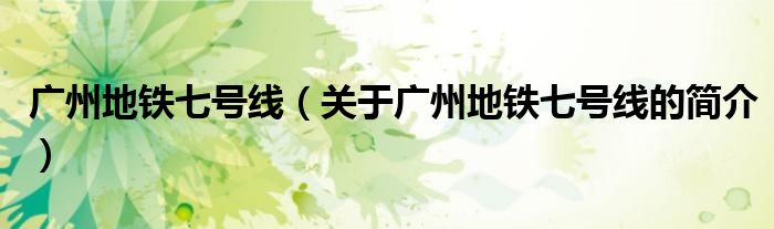 本文关于广州地铁七号线的简介就讲解完毕,希望对大家有所帮助。