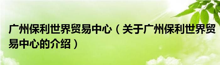 1、保利世界贸易中心写字楼由保利房地产(集团)股份有限公司开发的写字楼。
