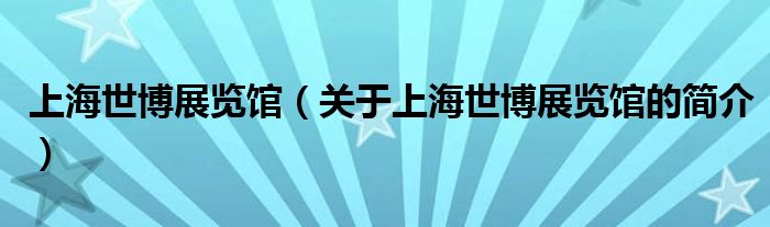 大家好,上海世博展览馆,关于上海世博展览馆的简介很多人还不知道,现在让我们一起来看看吧!