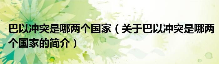 大家好,巴以冲突是哪两个国家,关于巴以冲突是哪两个国家的简介很多人还不知道,现在让我们一起来看看吧!