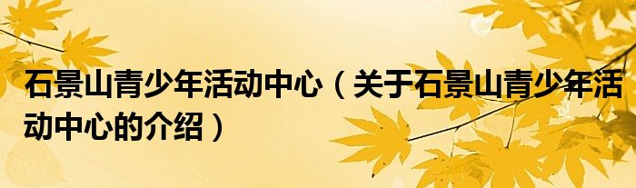 大家好,小安来为大家解答以上的问题。石景山青少年活动中心,关于石景山青少年活动中心的介绍很多人还不知道,现在让我们一起来看看吧!