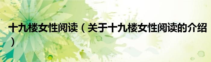大家好,小安来为大家解答以上的问题。十九楼女性阅读,关于十九楼女性阅读的介绍很多人还不知道,现在让我们一起来看看吧!