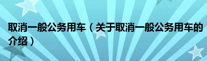 大家好,小安来为大家解答以上的问题。取消一般公务用车,关于取消一般公务用车的介绍很多人还不知道,现在让我们一起来看看吧!