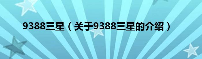 大家好,小安来为大家解答以上的问题。9388三星,关于9388三星的介绍很多人还不知道,现在让我们一起来看看吧!