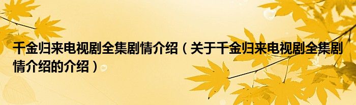 大家好,小安来为大家解答以上的问题。千金归来电视剧全集剧情介绍,关于千金归来电视剧全集剧情介绍的介绍很多人还不知道,现在让我们一起来看看吧!