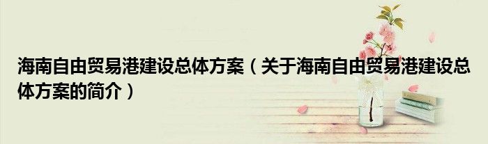 本文关于海南自由贸易港建设总体方案的简介就讲解完毕,希望对大家有所帮助。
