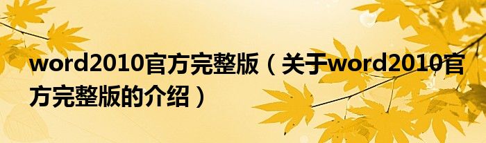 大家好,小安来为大家解答以上的问题。word2010官方完整版,关于word2010官方完整版的介绍很多人还不知道,现在让我们一起来看看吧!
