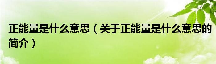 本文关于正能量是什么意思的简介就讲解完毕,希望对大家有所帮助。