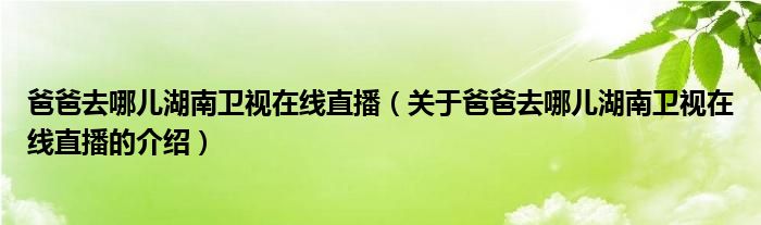 大家好,小安来为大家解答以上的问题。爸爸去哪儿湖南卫视在线直播,关于爸爸去哪儿湖南卫视在线直播的介绍很多人还不知道,现在让我们一起来看看吧!