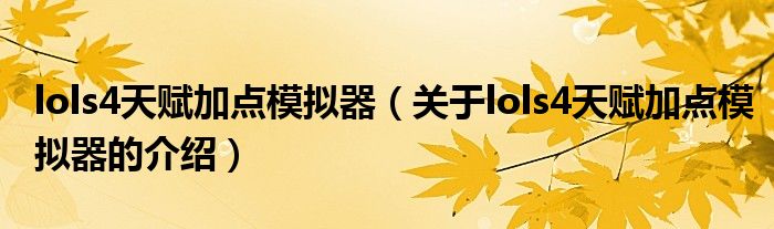 大家好,小安来为大家解答以上的问题。lols4天赋加点模拟器,关于lols4天赋加点模拟器的介绍很多人还不知道,现在让我们一起来看看吧!