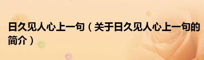 大家好,日久见人心上一句,关于日久见人心上一句的简介很多人还不知道,现在让我们一起来看看吧!