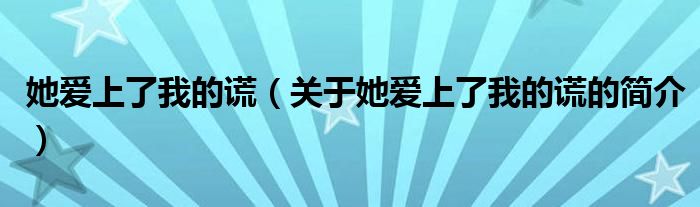 本文关于她爱上了我的谎的简介就讲解完毕,希望对大家有所帮助。