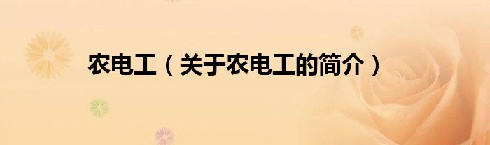 大家好,农电工,关于农电工的简介很多人还不知道,现在让我们一起来看看吧!