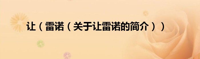 本文关于让 雷诺的简介就讲解完毕,希望对大家有所帮助。