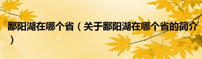 本文关于鄱阳湖在哪个省的简介就讲解完毕,希望对大家有所帮助。