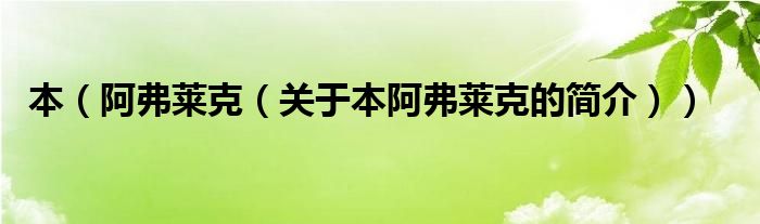 大家好,本 阿弗莱克,关于本 阿弗莱克的简介很多人还不知道,现在让我们一起来看看吧!