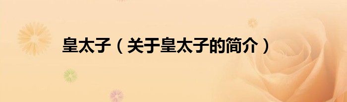 本文关于皇太子的简介就讲解完毕,希望对大家有所帮助。