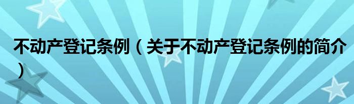 大家好,不动产登记条例,关于不动产登记条例的简介很多人还不知道,现在让我们一起来看看吧!