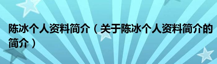 本文关于陈冰个人资料简介的简介就讲解完毕,希望对大家有所帮助。