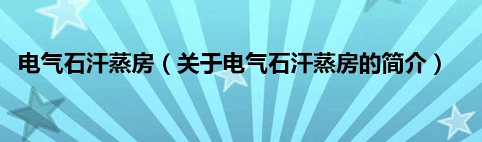 大家好,电气石汗蒸房,关于电气石汗蒸房的简介很多人还不知道,现在让我们一起来看看吧!