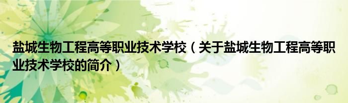 本文关于盐城生物工程高等职业技术学校的简介就讲解完毕,希望对大家有所帮助。
