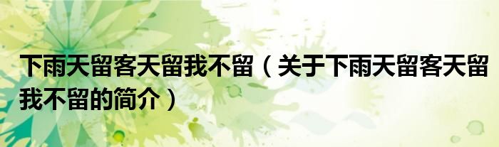 大家好,下雨天留客天留我不留,关于下雨天留客天留我不留的简介很多人还不知道,现在让我们一起来看看吧!