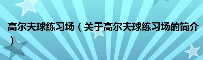 本文关于高尔夫球练习场的简介就讲解完毕,希望对大家有所帮助。