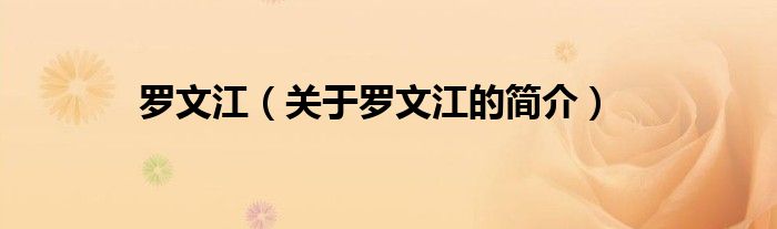 本文关于罗文江的简介就讲解完毕,希望对大家有所帮助。