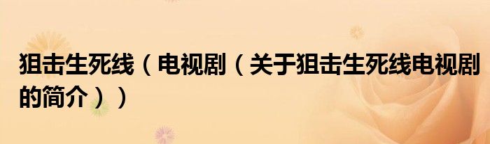 本文关于狙击生死线 电视剧的简介就讲解完毕,希望对大家有所帮助。