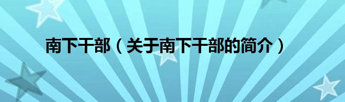 大家好,南下干部,关于南下干部的简介很多人还不知道,现在让我们一起来看看吧!