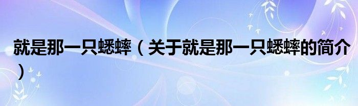 本文关于就是那一只蟋蟀的简介就讲解完毕,希望对大家有所帮助。