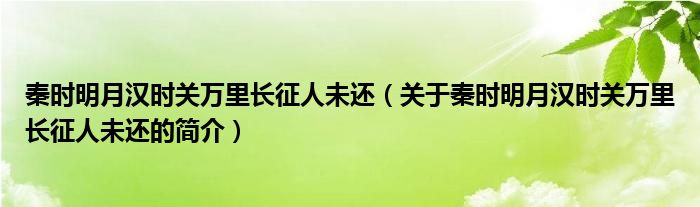 本文关于秦时明月汉时关万里长征人未还的简介就讲解完毕,希望对大家有所帮助。