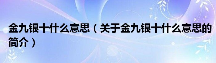 大家好,金九银十什么意思,关于金九银十什么意思的简介很多人还不知道,现在让我们一起来看看吧!