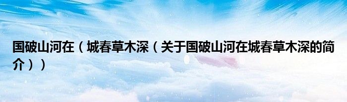 本文关于国破山河在 城春草木深的简介就讲解完毕,希望对大家有所帮助。