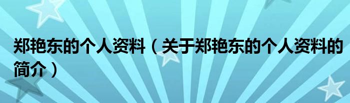 本文关于郑艳东的个人资料的简介就讲解完毕,希望对大家有所帮助。