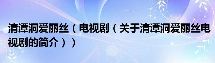 本文关于清潭洞爱丽丝 电视剧的简介就讲解完毕,希望对大家有所帮助。