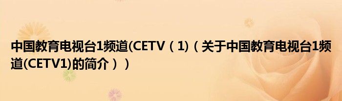 本文关于中国教育电视台1频道(CETV 1)的简介就讲解完毕,希望对大家有所帮助。
