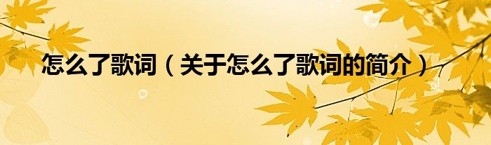 本文关于怎么了歌词的简介就讲解完毕,希望对大家有所帮助。