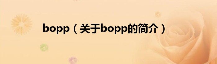 大家好,bopp,关于bopp的简介很多人还不知道,现在让我们一起来看看吧!