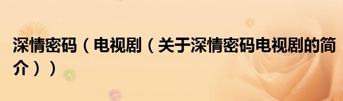 本文关于深情密码 电视剧的简介就讲解完毕,希望对大家有所帮助。