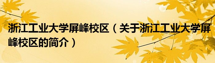本文关于浙江工业大学屏峰校区的简介就讲解完毕,希望对大家有所帮助。