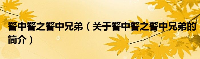 本文关于警中警之警中兄弟的简介就讲解完毕,希望对大家有所帮助。