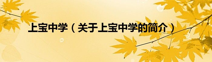 大家好,上宝中学,关于上宝中学的简介很多人还不知道,现在让我们一起来看看吧!